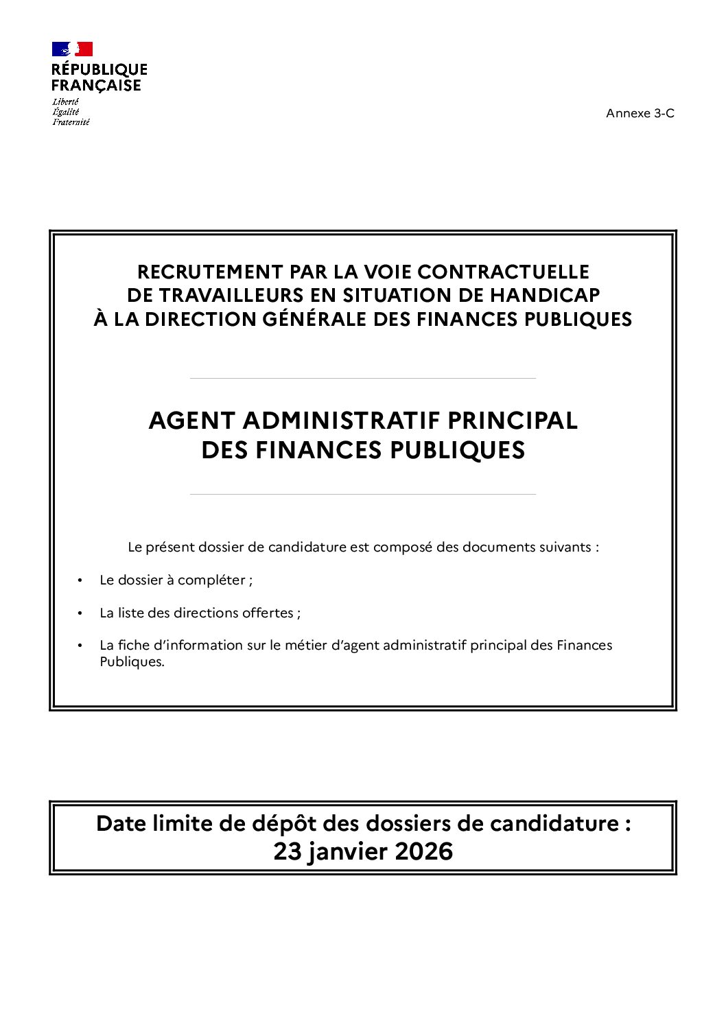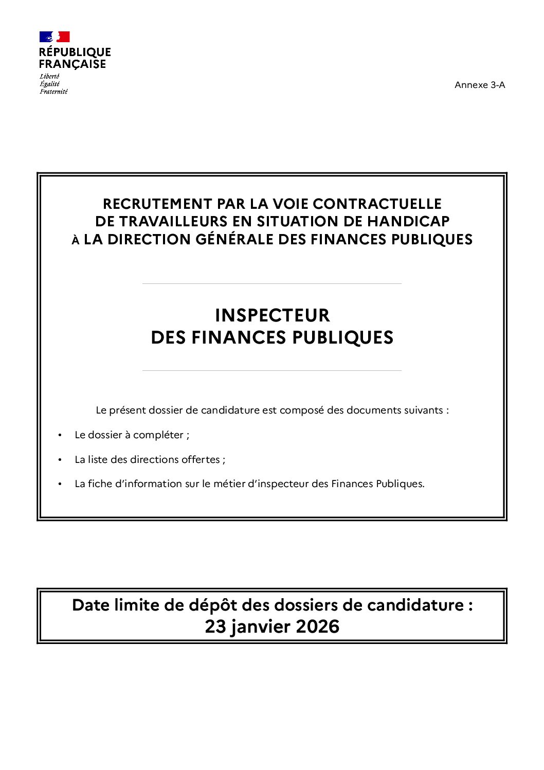 Retour Direction Générale des Finances publiques – Recrutement par voie contractuelle de travailleurs en situation de handicap Dossiers de candidature à télécharger ci-dessous