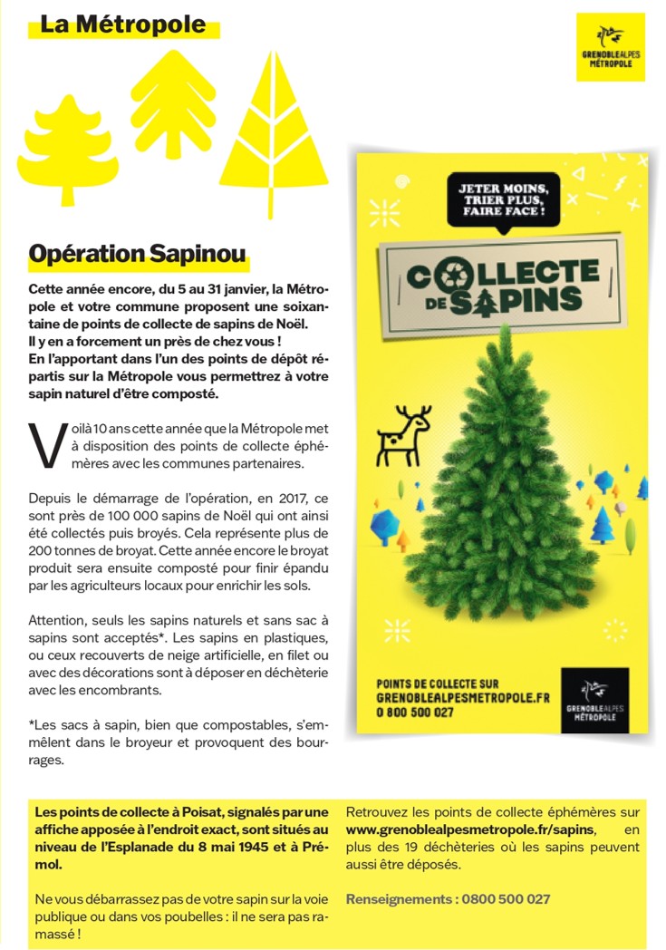 Opération Sapinou – Du 05 au 31 janvier – Points de collecte : Esplanade du 8 mai et Prémol