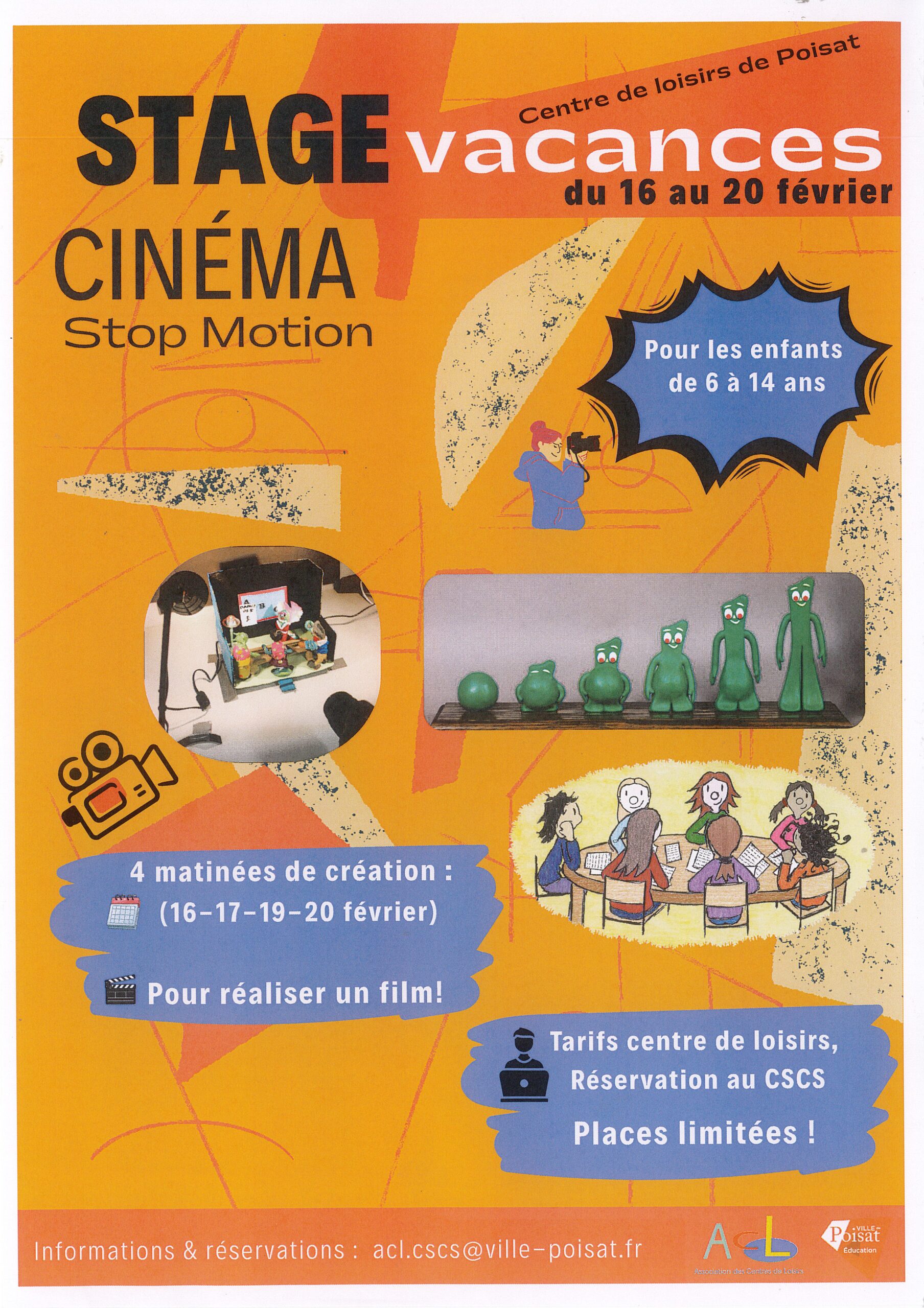 Stage cinéma – Organisé par l’ACL – Du 16 au 20 février – Pour les 6 à 14 ans