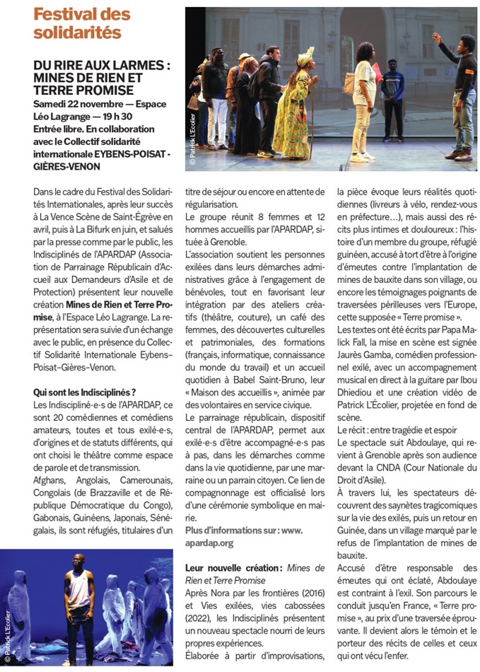 Retour Théâtre « Mines de rien et Terre Promise » – Samedi 22 novembre – 19 h – Espace Léo Lagrange – Entrée libre sur réservation